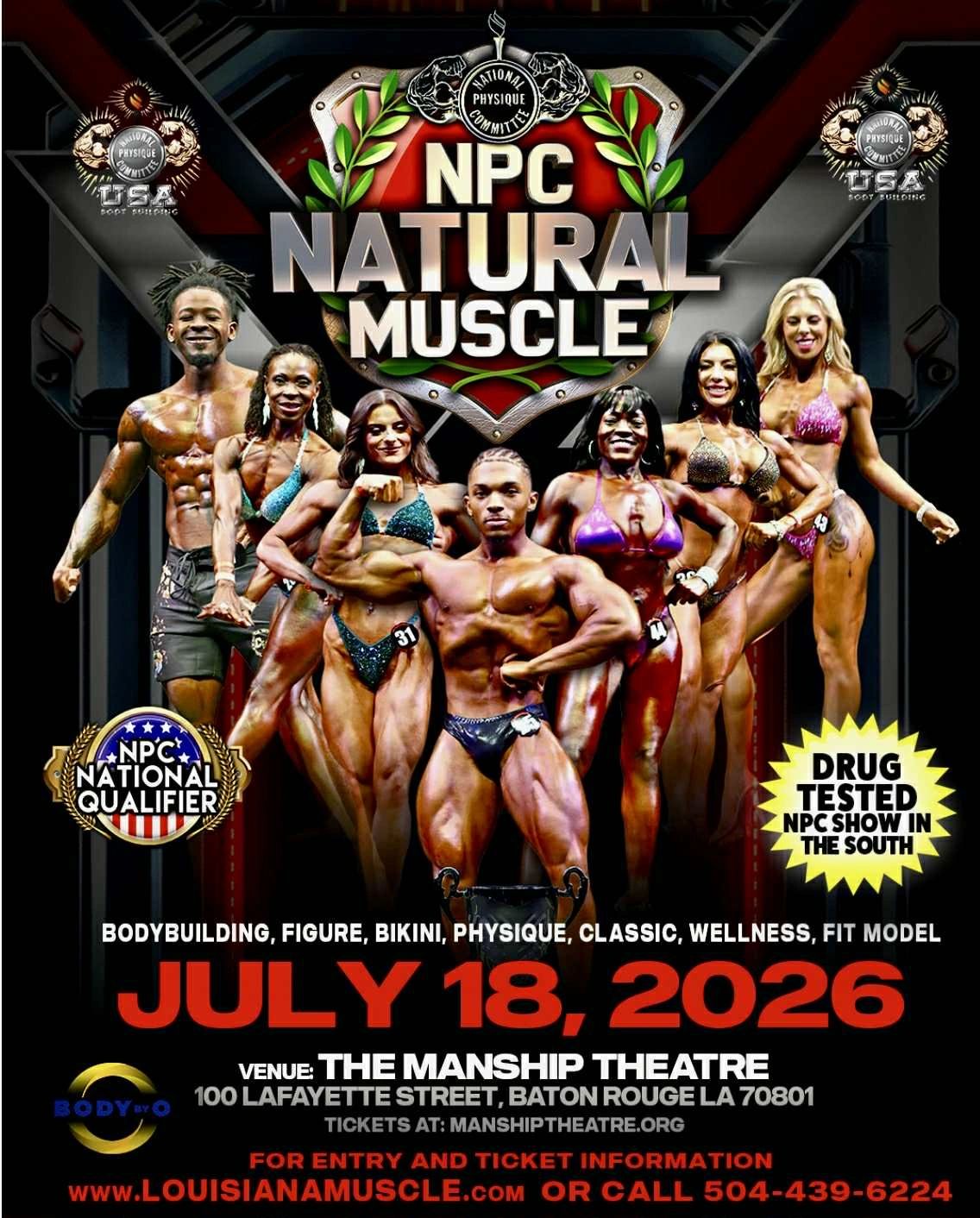 NPC NATURAL MUSCLE IS BEING HELD AT THE MANSHIP THEATRE AT 100 LAFAYETTE STREET, BATON ROUGE, LA 70801
